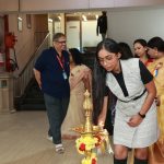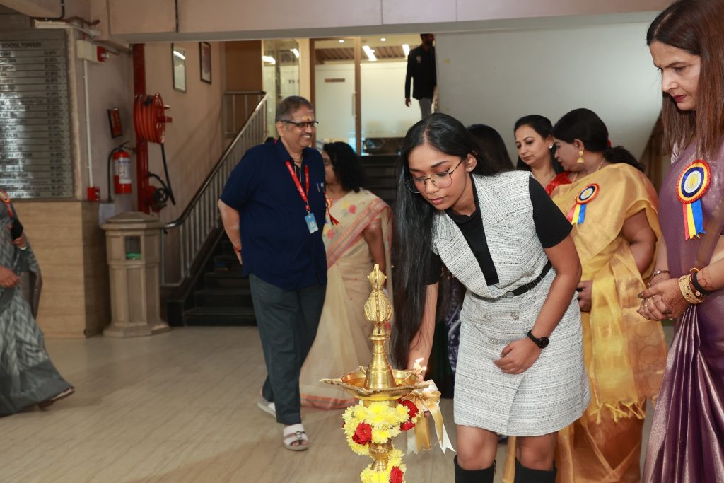 The program kickstarted with the inauguration by lighting the ceremonial lamp by the school toppers.