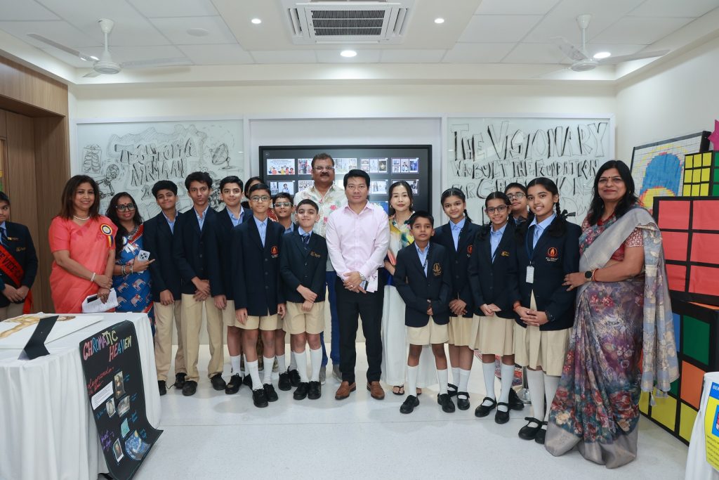 Upholding the cherished school tradition, the NIRMAAN Exhibition 2025 was inaugurated by the school’s ICSE Board Topper, Ms. Ananya Chauhan, as the Chief Guest. The exhibition was graced by the presence of our Special Guest of Honour, Shri Radhabinod Sharma, Commissioner of Mira–Bhayandar, who expressed deep admiration for the students’ creativity, innovation, and dedication. Describing the exhibition as ‘an amazing and fantastic experience,’ he appreciated the inclusive concept of 100% student participation and praised “The Time Capsule” for its visionary and forward-thinking approach. His encouraging words greatly motivated both students and teachers, reinforcing the school’s commitment to nurturing curiosity, imagination, and holistic learning.