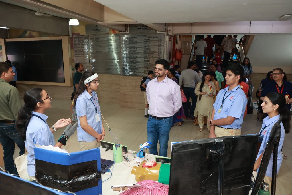 The exhibition was made special by the presence of Mr. Shailesh Dalmia, Hon. Secretary, and Mr. Mudit Dalmia, Vice President of the N. L. Dalmia Educational Society. They interacted with the students, appreciated their hard work, and praised their creativity and futuristic ideas. Their encouraging words inspired the students to think big, innovate, and believe in their abilities, adding warmth and motivation to the event.